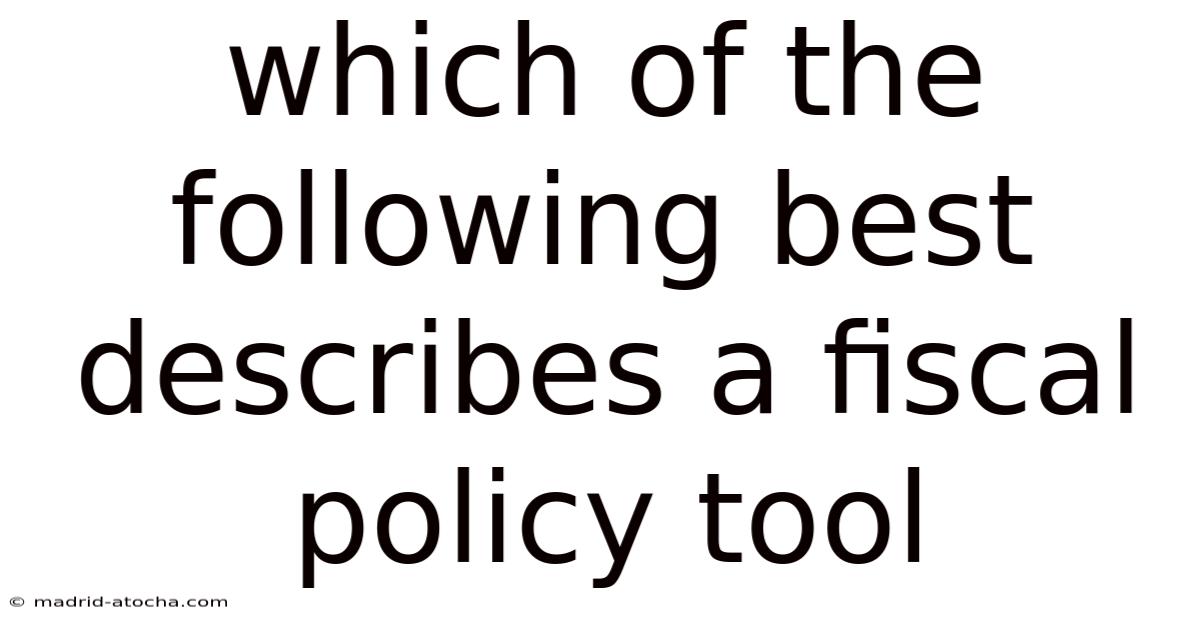 Fiscal policy tools are the levers governments use to influence a country’s economic activity, stabilize the business cycle, and achieve macro‑economic objectives such as full employment, price stability, and balanced growth. Understanding which of the following best describes a fiscal policy tool requires a clear grasp of the components of fiscal policy, the mechanisms through which they operate, and the context in which they are applied. This article will dissect the concept, explore the main tools, and illustrate how they are employed in practice, providing a full breakdown for students, policymakers, and anyone interested in macroeconomic policy.