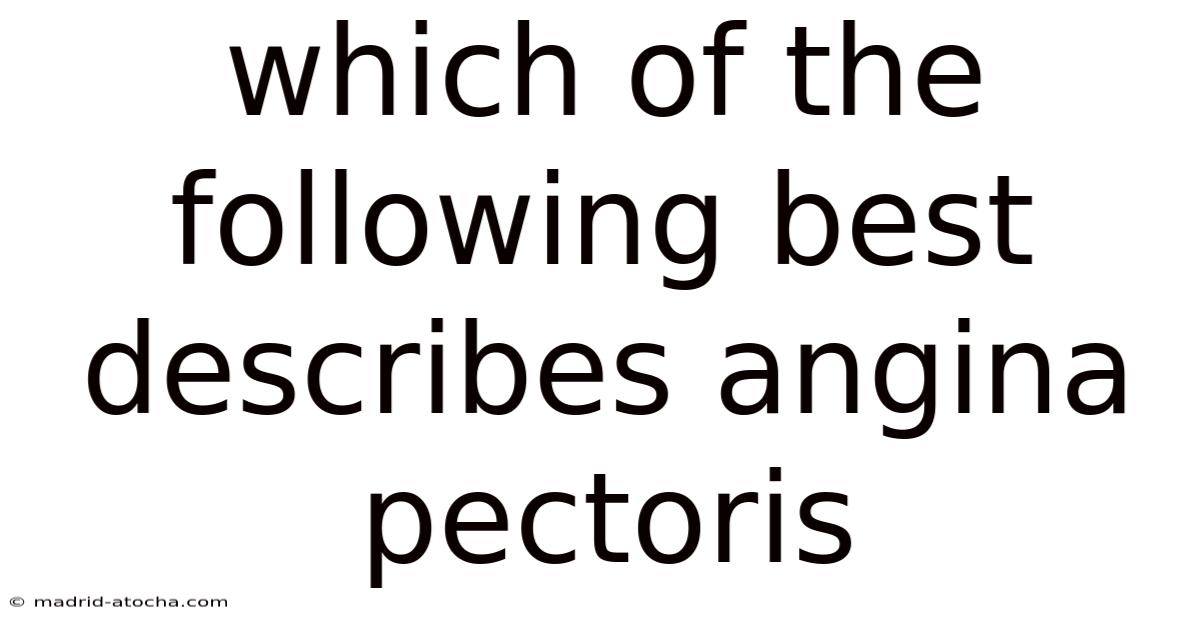 Angina pectoris is not a disease itself but a critical symptom of an underlying heart condition, most commonly coronary artery disease (CAD). The statement that best describes angina pectoris is: **It is chest pain or discomfort caused by myocardial ischemia—a temporary imbalance between the heart's blood supply and its oxygen demand—typically due to atherosclerosis in the coronary arteries.It manifests as chest discomfort, pain, pressure, or squeezing that occurs when the heart muscle does not receive enough oxygen-rich blood to meet its demands. Which means understanding the precise nature of angina is essential because its description directly dictates the urgency and type of medical response required. ** This definition encapsulates the core pathophysiology, the primary cause, and the essential characteristic of its temporary nature Simple as that..