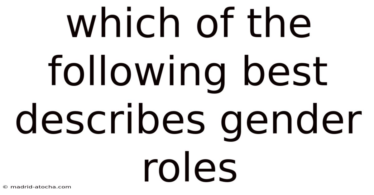 The concept of gender roles refers to the set of societal norms, behaviors, and expectations that a culture deems appropriate for individuals based on their perceived sex. These roles are not innate biological imperatives but are social constructs learned and reinforced through family, media, education, and religious institutions. So they dictate how men and women "should" think, act, dress, and relate to one another, creating a powerful framework that shapes personal identity, economic opportunities, and social power dynamics throughout history and across the globe. To determine which description best captures this complex phenomenon, one must move beyond simplistic binaries and examine its historical roots, theoretical foundations, and contemporary evolution Worth knowing..