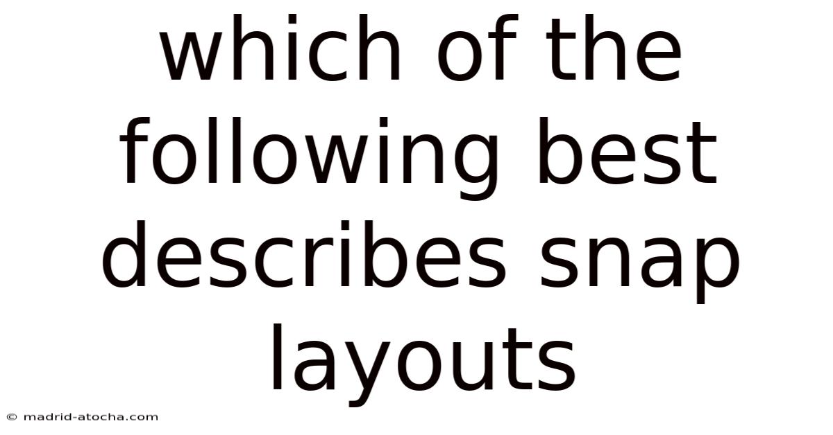 When exploring modern productivity tools, you may encounter the question which of the following best describes snap layouts in certification exams, tech tutorials, or workplace training materials. Day to day, snap layouts are an intelligent, built-in window management feature that automatically arranges multiple applications into organized, resizable grids on your screen. By replacing manual resizing and overlapping windows with precision templates, this system helps users maintain focus, reduce visual clutter, and maximize screen real estate across single or multi-monitor setups Simple, but easy to overlook..