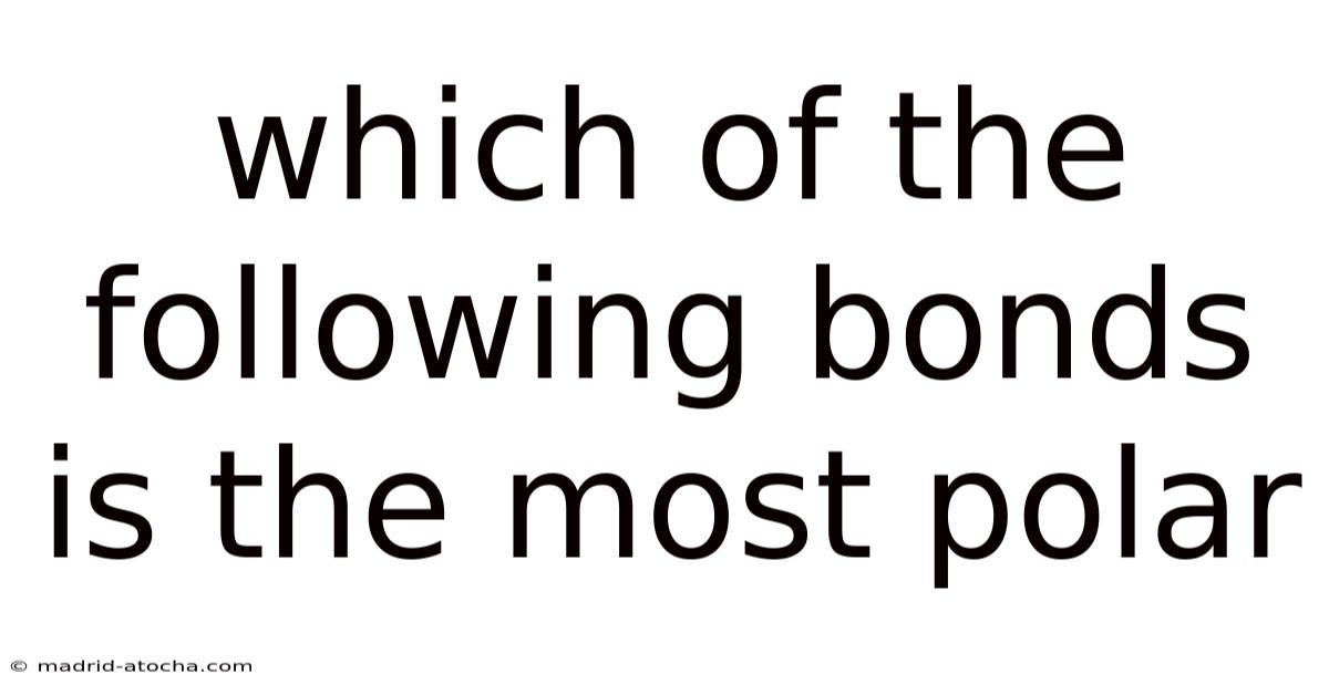 Simply put, when comparing bonds for polarity, the H-F bond is the most polar among common chemical bonds. In practice, its large electronegativity difference results in almost complete charge separation, making it a textbook example of a highly polar covalent bond. Understanding bond polarity is crucial for predicting the behavior of molecules in chemical reactions, their physical properties, and their interactions with other substances.