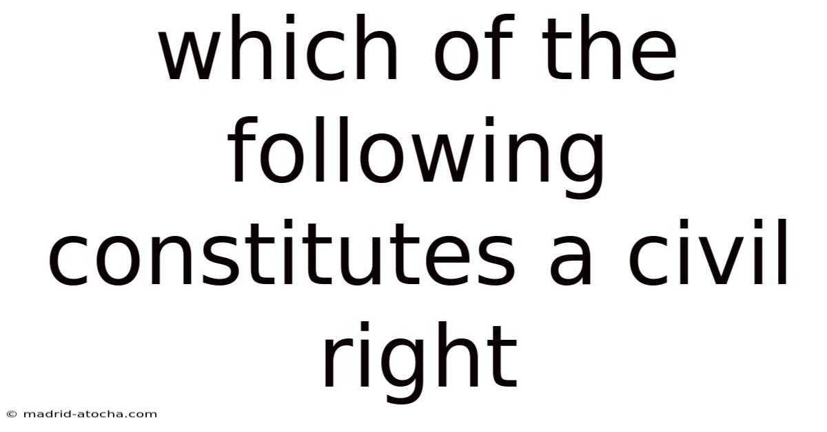 Distinguishing civil rights from other legal concepts is essential for accurate legal reasoning, effective advocacy, and informed citizenship. A civil right is a legally enforceable guarantee that protects individuals from discrimination and ensures equal participation in public life, rooted in constitutional amendments and reinforced by federal statutes. When faced with a question like “Which of the following constitutes a civil right?,” look for answers that involve equal protection, anti‑discrimination, and government‑backed enforcement—such as voting rights, fair employment, and access to public accommodations The details matter here..