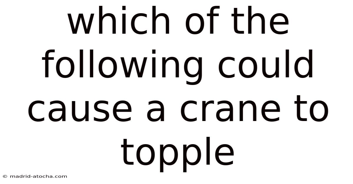 Which of the Following Could Cause a Crane to Topple is a critical safety question in heavy industry, addressing the primary risks that lead to catastrophic equipment failure. Crane toppling is not a random event; it is typically the result of a chain of preventable factors, often related to environmental forces, human error, or mechanical neglect. Understanding these vectors is essential for operators, site managers, and anyone working in proximity to these machines, as it directly impacts operational integrity and worker safety. This comprehensive analysis will dissect the specific conditions and actions that destabilize cranes, providing a deep dive into the physics of failure and the protocols required to prevent it Still holds up..
