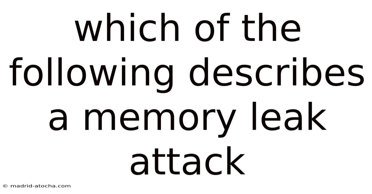 In the world of software security, a memory leak attack is a subtle yet powerful technique that exploits a program’s improper memory management. Here's the thing — unlike classic denial‑of‑service (DoS) attacks that flood a system with traffic, a memory leak attack silently drains resources, causing performance degradation, crashes, or even data loss over time. This article explains what a memory leak attack is, why it matters, how it works, and practical steps to protect your applications and infrastructure Less friction, more output..