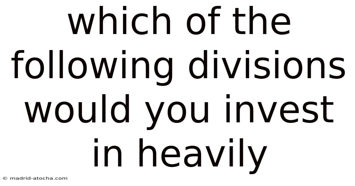 The dilemma of which of the following divisions would you invest in heavily often arises when presented with multiple opportunities, each promising distinct returns. Investors, whether individuals or institutions, face the challenge of identifying divisions with the highest potential for capital appreciation and sustainable growth. On top of that, the current economic environment is characterized by volatility, technological disruption, and shifting consumer preferences. That's why, a strategic approach is vital. Rather than chasing short-term gains, a focus on long-term structural advantages provides a more reliable path to wealth creation. This analysis will dissect key sectors, examining their inherent strengths and vulnerabilities to guide informed decision-making And that's really what it comes down to..