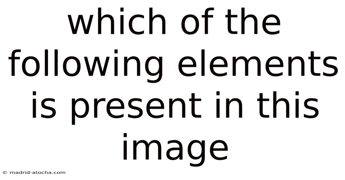The question of identifying elements within an image is a fundamental aspect of visual analysis, whether in art, science, or everyday observation. Which means this article breaks down the process of identifying elements in images, explores common elements that might be present, and provides a framework for approaching such questions. Here's the thing — when presented with an image and asked to determine which of several elements is present, the task requires a combination of critical thinking, contextual awareness, and an understanding of visual cues. While the specific image in question is not provided here, the principles discussed apply universally to any visual content.