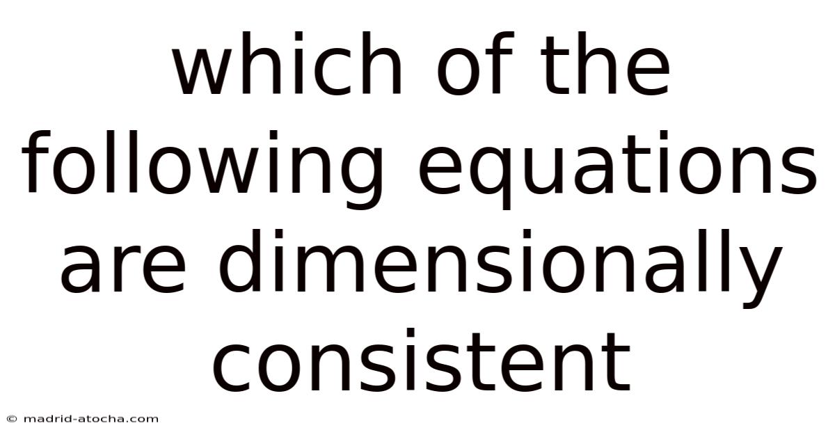 Dimensional consistency is a fundamental concept in physics and engineering that ensures equations make sense from a unit perspective. That said, when we say an equation is dimensionally consistent, we mean that the units on both sides of the equation match. That's why this principle helps verify the correctness of equations and prevents errors in calculations. Let's explore this concept in detail and examine several equations to determine their dimensional consistency Which is the point..
