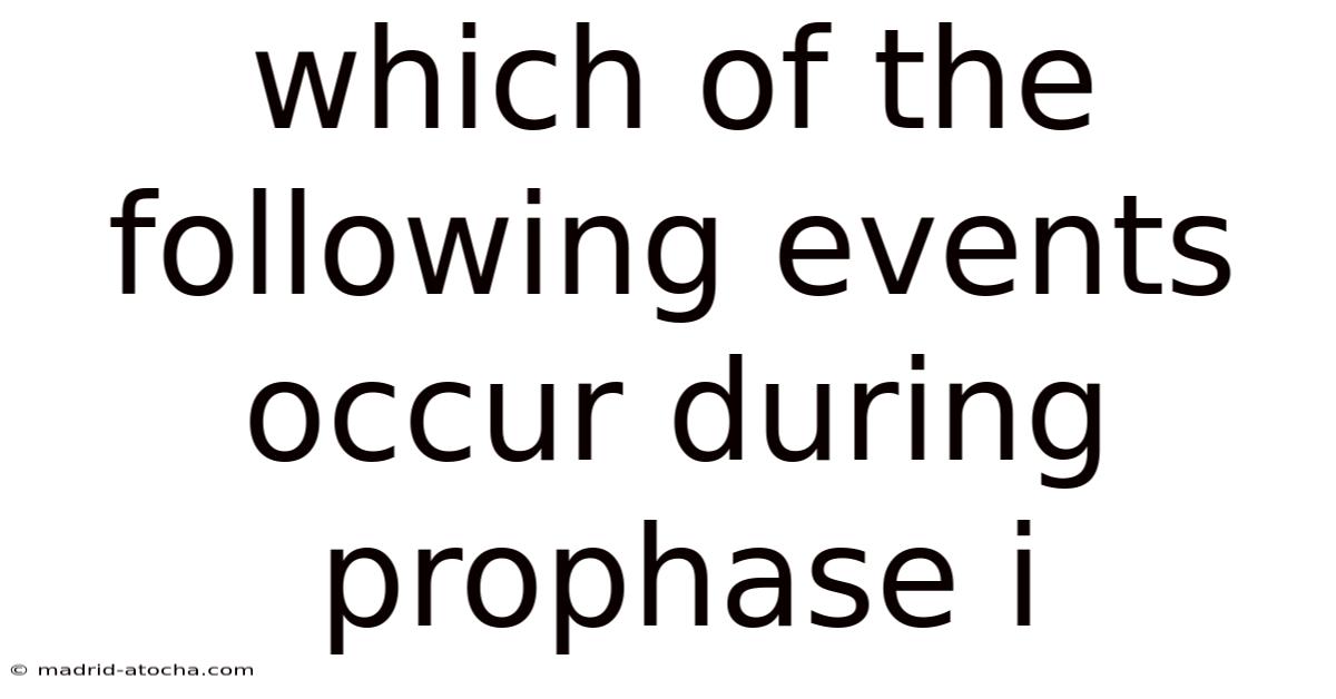 Which Of The Following Events Occur During Prophase I