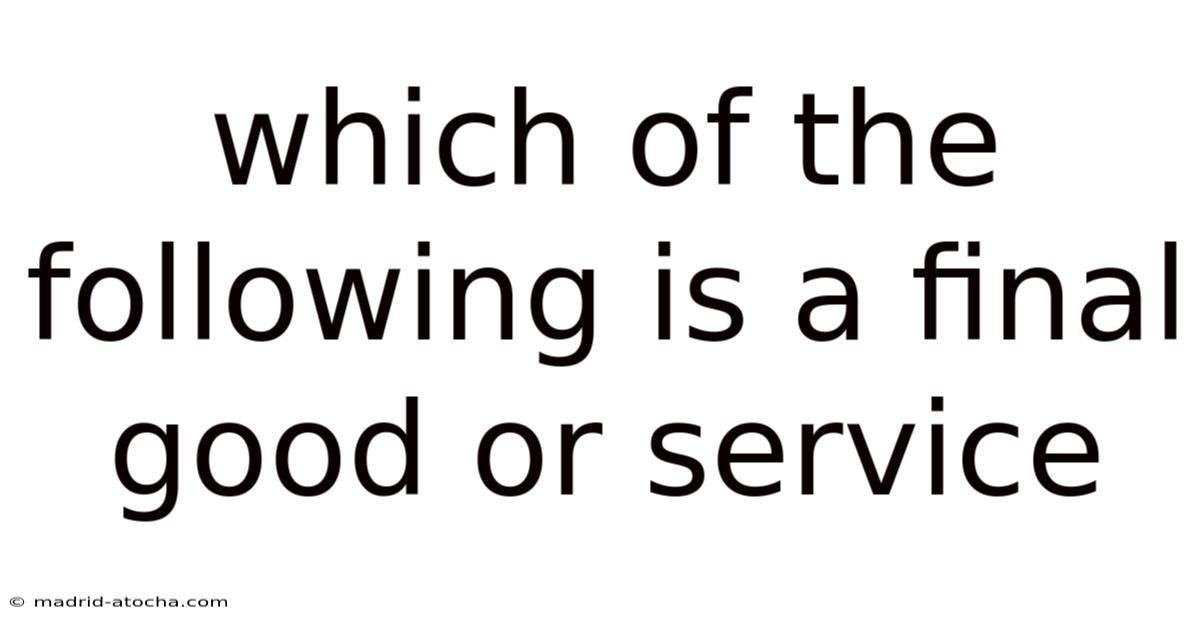 When asked “which of the following is a final good or service?”, look for the end‑user intent and absence of further transformation. Items that meet both criteria belong to the final category.