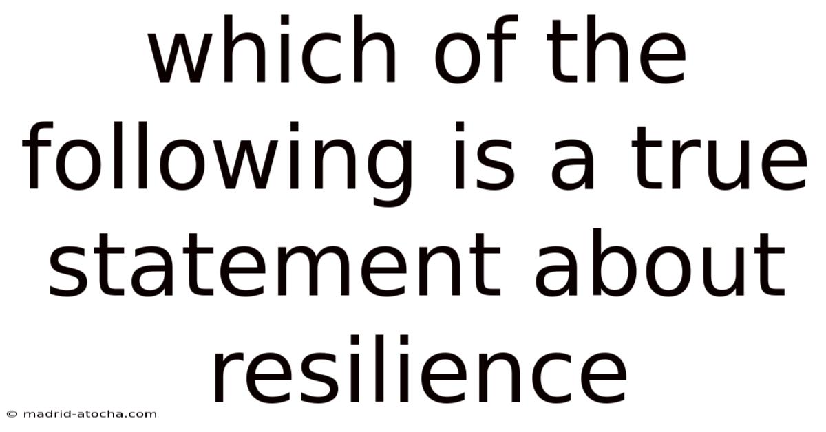 When considering the various statements about resilience, it becomes clear that adaptability is a cornerstone. Without the ability to adjust to changing circumstances, resilience becomes a fragile construct. Now, similarly, emotional regulation is a vital skill that separates those who bounce back quickly from those who struggle to cope. These elements work together to create a strong framework for resilience That's the whole idea..