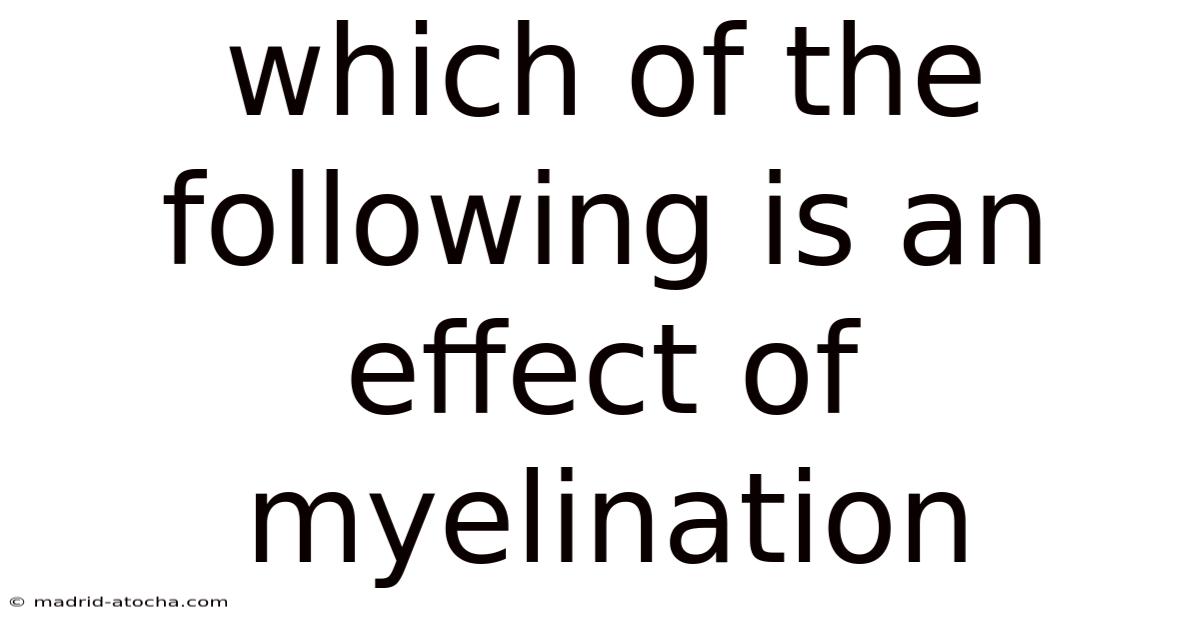 Myelination is one of the most critical processes in the development and functioning of the nervous system. Understanding which of the following is an effect of myelination can help students, healthcare professionals, and anyone interested in neuroscience grasp how our brains and nerves transmit information so rapidly. The effects of myelination extend far beyond simply speeding up nerve signals—they shape everything from our reflexes to our ability to learn complex skills The details matter here..