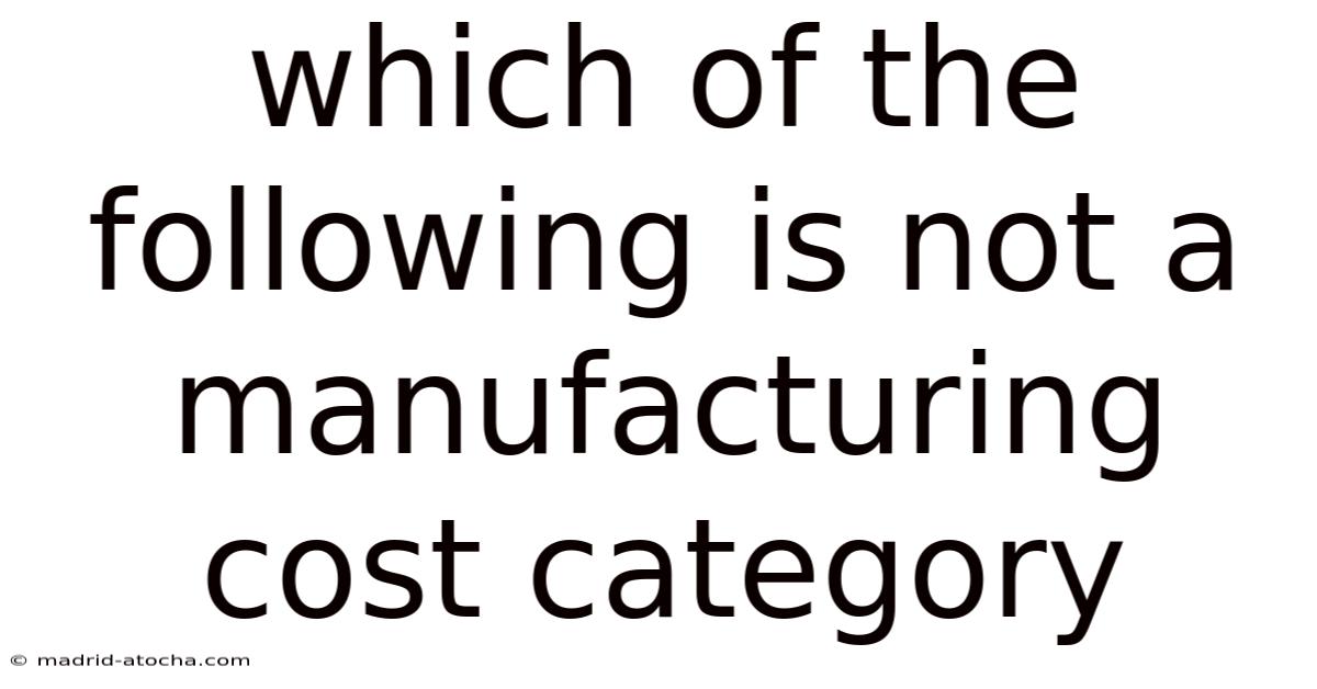 When analyzing business expenses or studying cost accounting, a fundamental question arises: which of the following is not a manufacturing cost category? This distinction is not merely academic; it is the bedrock of accurate product costing, profitability analysis, and financial reporting. Still, manufacturing costs, also known as product costs, are the expenses directly and indirectly incurred to create a product. This leads to they are capitalized as inventory on the balance sheet until the goods are sold. Conversely, non-manufacturing costs are period expenses, charged to the income statement in the period they occur. Misclassifying these costs distorts financial statements, leading to poor business decisions. This article will definitively establish the three core manufacturing cost categories and clearly identify the common expense types that are categorically not part of manufacturing, providing the clarity needed for students, managers, and entrepreneurs That alone is useful..