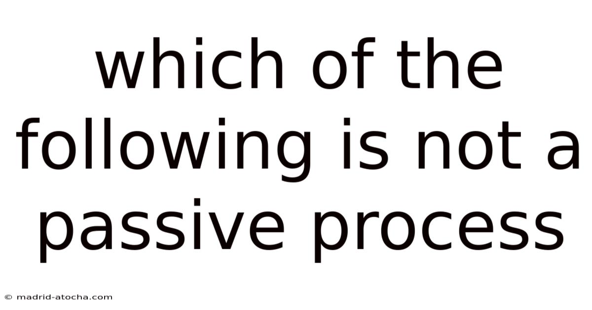 Given these definitions and explanations, it becomes clear that active transport is the process that is not passive. Unlike diffusion, osmosis, and facilitated diffusion, active transport requires energy input to move substances against their natural flow. This energy-dependent mechanism is essential for maintaining concentration gradients that are crucial for various cellular functions, such as nerve impulse transmission and nutrient uptake The details matter here..