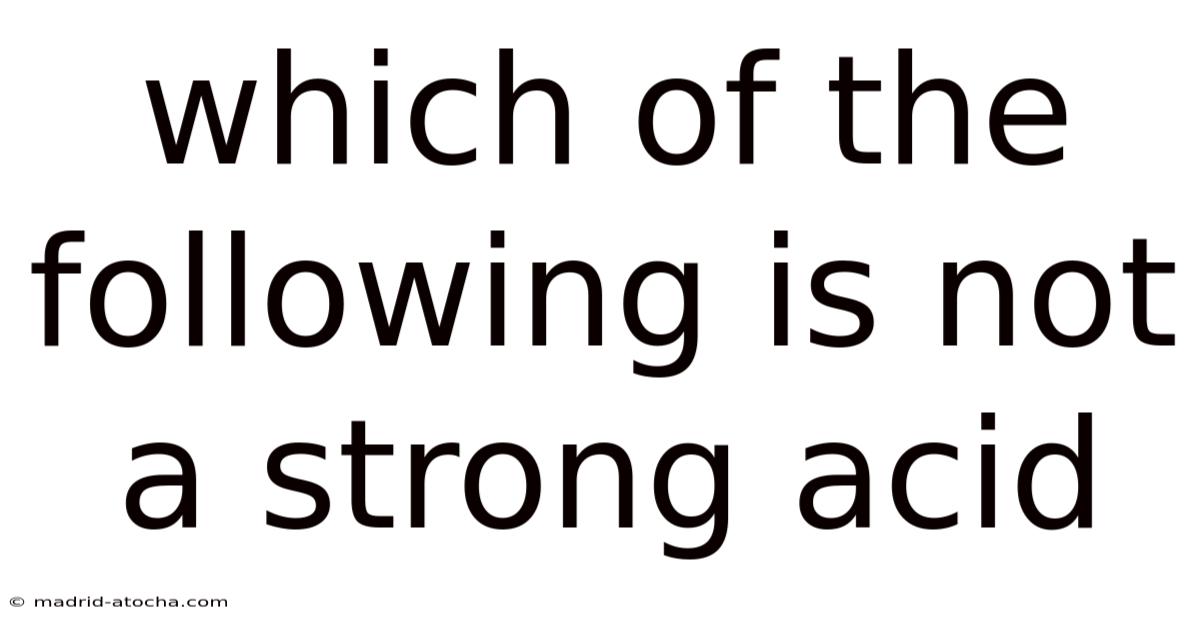 The question of which of the following is not a strong acid serves as a fundamental checkpoint in understanding chemical reactivity and solution chemistry. In real terms, strong acids are defined by their ability to completely dissociate in aqueous solutions, releasing all of their hydrogen ions (H⁺) into the solution. This characteristic makes them highly reactive and corrosive, playing critical roles in industrial processes, laboratory experiments, and even biological systems. Still, not all acids share this aggressive behavior. Many compounds are classified as weak acids, which only partially dissociate, establishing an equilibrium between the undissociated acid and its ions. On top of that, identifying the difference is essential for students, chemists, and professionals working in fields ranging from pharmaceuticals to environmental science. This article will explore the criteria for strong acids, examine common examples, and clarify which types of compounds do not belong to this category of complete dissociation.