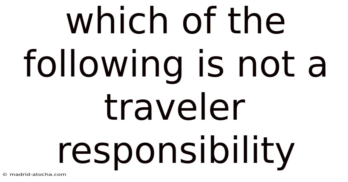 When planning a trip,every traveler must know which of the following is not a traveler responsibility, as understanding the limits of personal duty helps avoid misunderstandings and ensures a safe, respectful journey. Which means this article breaks down the most common responsibilities that travelers are expected to uphold, examines the boundaries of those duties, and provides a clear framework for identifying the one item that does not belong on the list of traveler responsibilities. Recognizing the tasks that fall outside your scope of obligations enables you to focus on what you can genuinely control—your own behavior, preparation, and respect for local norms—while also clarifying the expectations placed upon you by hosts, fellow travelers, and the destinations themselves. By the end, you will have a practical checklist that empowers you to travel confidently, ethically, and with a deeper appreciation for the shared experience of exploring new places The details matter here..