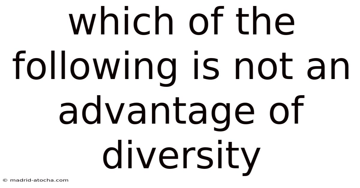 Diversity, in its broadest sense, refers to the presence of varied characteristics, perspectives, and backgrounds within a group, organization, or society. Now, it encompasses differences in race, ethnicity, gender, age, religion, sexual orientation, socioeconomic status, and more. While diversity is often celebrated for its potential to build innovation, creativity, and inclusivity, it is not without its complexities. The question of whether all aspects of diversity are inherently advantageous is a nuanced one. In this article, we will explore the commonly cited advantages of diversity and identify which of the following is not an advantage. This analysis will help clarify misconceptions and provide a balanced view of diversity’s role in different contexts Turns out it matters..