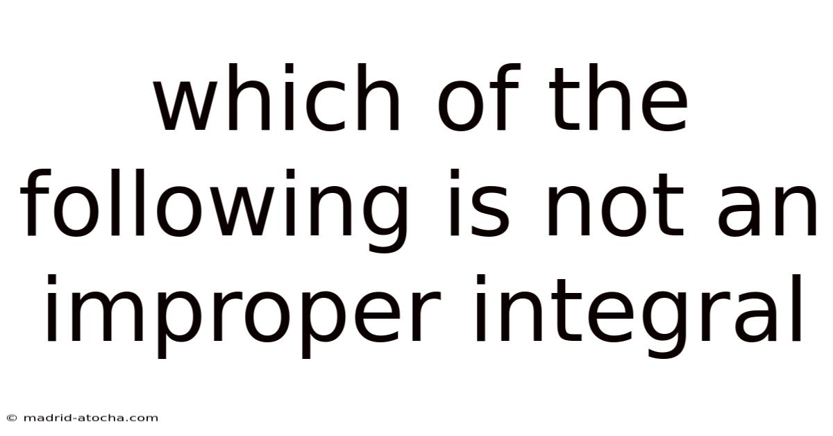 Understanding the distinction between proper and improper integrals is a fundamental milestone in mastering integral calculus. While a standard definite integral calculates the area under a curve over a finite interval for a well-behaved function, an improper integral arises when one or both of these conditions are violated. The question "which of the following is not an improper integral?" is a common and crucial one in calculus courses and exams. It tests your ability to recognize the precise mathematical conditions that make an integral "improper." This article provides a comprehensive, step-by-step framework to confidently answer this question, moving beyond memorization to deep conceptual understanding.