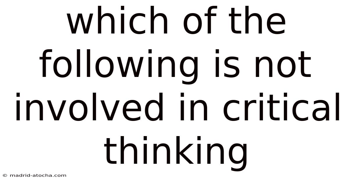 Understanding which aspects are not involved in critical thinking is essential for anyone aiming to sharpen their analytical skills and enhance their problem-solving abilities. Here's the thing — when we dive into the topic of critical thinking, we uncover a world of thought processes that challenge assumptions, evaluate evidence, and make informed decisions. This article will explore the key components of critical thinking and identify what elements are often left out, helping you recognize the gaps in your reasoning And that's really what it comes down to..