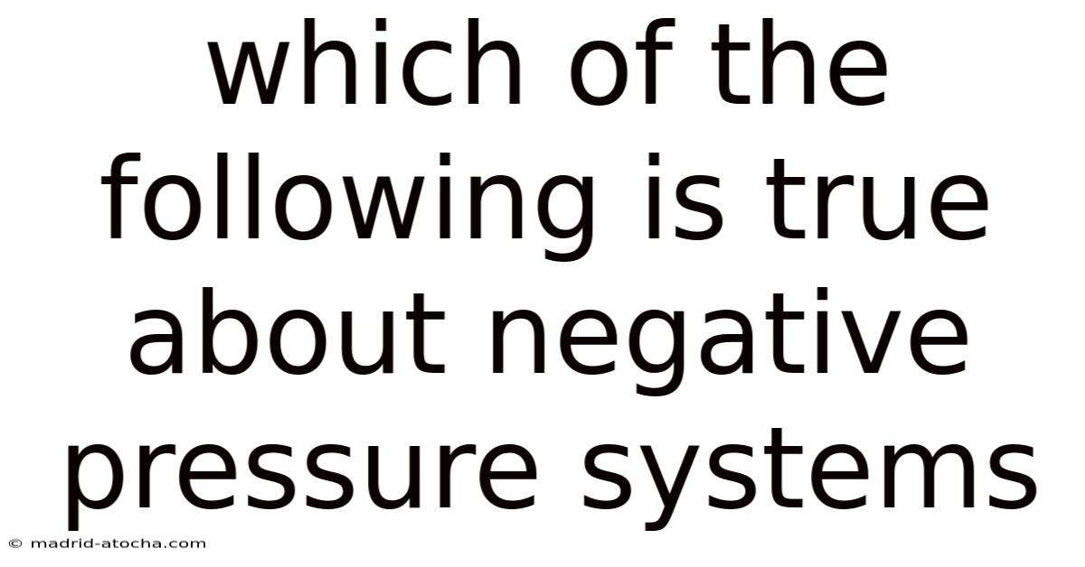 The main question that often arises is: Which of the following is true about negative pressure systems? The answer hinges on understanding the mechanics of airflow, the importance of proper filtration, and the role of ventilation rates. Below, we explore the fundamental truths about negative pressure systems and clarify common misconceptions.