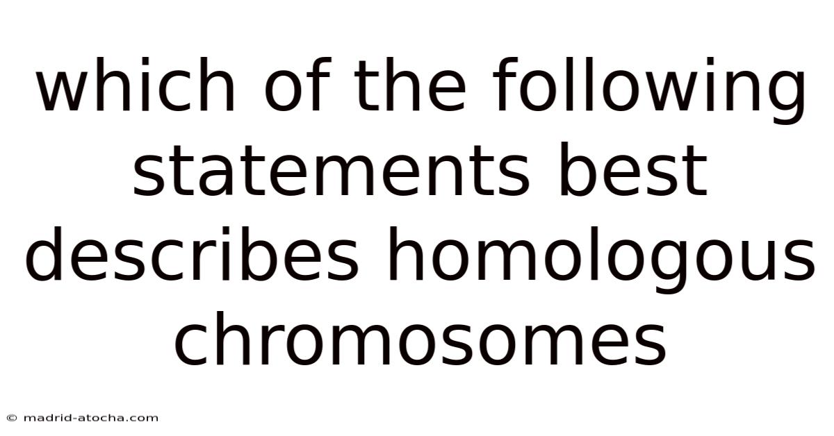 When studying genetics, you will often encounter the question: which of the following statements best describes homologous chromosomes? Homologous chromosomes are matching pairs of DNA structures found in diploid cells, with one inherited from each parent, carrying the same genes in identical order but potentially different alleles. Day to day, understanding their structure, behavior during meiosis, and role in genetic inheritance is essential for mastering biology, genetics, and modern medical research. This guide breaks down their defining characteristics, clarifies common misconceptions, and provides the most accurate statement to help you confidently answer exam questions or deepen your scientific knowledge.