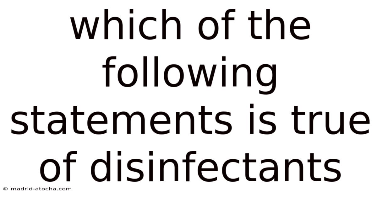 Understanding which statements are true about disinfectants enables individuals and institutions to make informed decisions that protect public health. On the flip side, the correct assertion is that disinfectants are regulated products designed to reduce microbial load on inanimate surfaces to safe levels when used according to label directions. Their efficacy hinges on proper concentration, contact time, and surface preparation, while safety depends on adherence to handling protocols. By integrating these principles into routine cleaning practices, communities can significantly curb the spread of infectious agents and develop healthier environments That alone is useful..