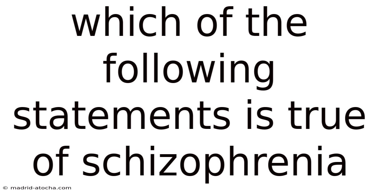 schizophrenia remains oneof psychiatry’s most complex and misunderstood conditions, profoundly impacting how individuals perceive reality. Day to day, this article examines a critical question: which of the following statements accurately reflects the nature of schizophrenia? understanding this disorder requires navigating a landscape often clouded by myths and stigma. Consider this: the statements in question typically revolve around causality, symptomatology, and treatment efficacy. let’s dissect each claim with scientific rigor to reveal the truth That's the whole idea..
