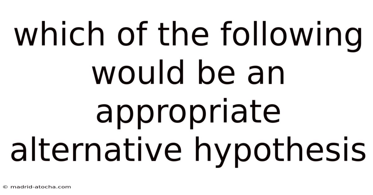 When you design a study that involves hypothesis testing, the alternative hypothesis (often denoted (H_1) or (H_a)) is the statement that you expect to find evidence for. Think about it: selecting a proper alternative hypothesis is crucial because it determines the direction of the test, the statistical power, and ultimately the scientific conclusions you can draw. That's why it is the complement of the null hypothesis ((H_0)), which usually claims no effect or no difference. Below, we walk through the reasoning, common forms, and practical tips for crafting an appropriate alternative hypothesis Nothing fancy..