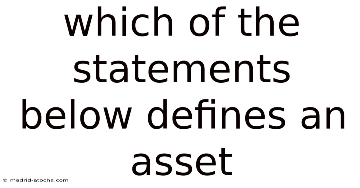 When exploring financial concepts, the term "asset" often arises in discussions about personal finance, business management, and accounting. That said, many people struggle to pinpoint the exact definition of an asset, especially when presented with multiple statements or options. Which means this article aims to clarify what constitutes an asset by analyzing key characteristics, common examples, and the criteria used to distinguish assets from other financial terms. By the end, readers will be equipped to evaluate statements and identify which one accurately defines an asset Simple, but easy to overlook..