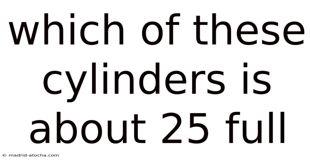Graduated cylinders are cylindrical glassware vessels with graduated markings along their length, used to measure the volume of liquids. The markings are typically spaced to represent specific increments, such as 1 milliliter (mL) or 5 mL, depending on the cylinder's size and intended precision. The key to answering "which cylinder is about 25% full?" lies in understanding the cylinder's total capacity and calculating the volume corresponding to 25% of that capacity. This requires you to visually estimate the liquid level against the scale and perform a basic percentage calculation. Let's break down the process step-by-step Turns out it matters..
