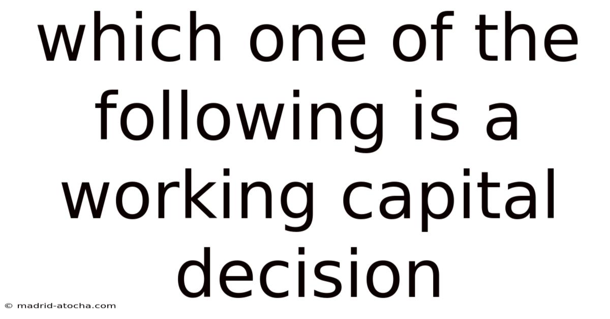 Which One of the Following Is a Working Capital Decision? A complete walkthrough