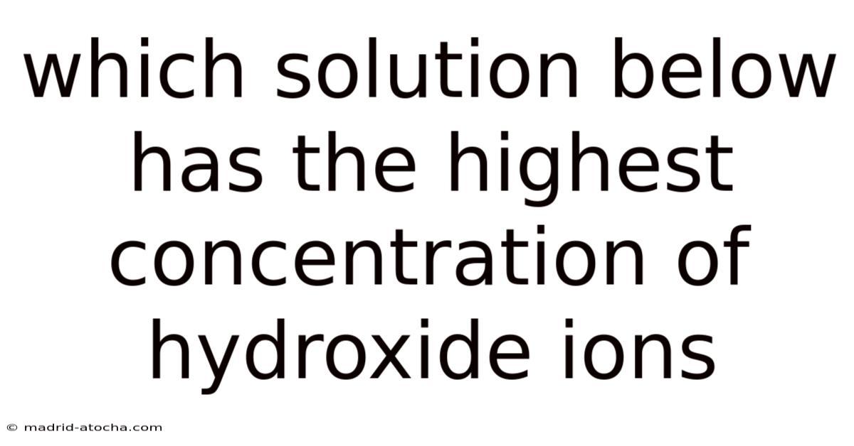 The concentration of hydroxide ions (OH⁻) in a solution is a critical factor in determining its basicity. Hydroxide ions are the primary indicators of how strongly a solution can neutralize acids. When comparing different solutions, identifying which one has the highest hydroxide ion concentration is essential for applications in chemistry, biology, and industrial processes. This article explores the principles behind hydroxide ion concentration, the factors that influence it, and how to determine which solution is the most basic Took long enough..