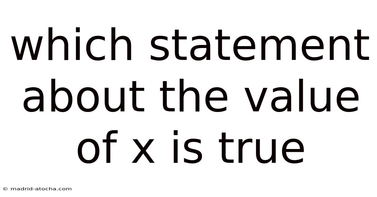 At the end of the day, the truth of a statement about the value of x is entirely dependent on the mathematical or real-world context in which x is defined. By carefully analyzing the given information and applying appropriate mathematical principles, you can confidently determine which statement is accurate. Always remember to verify your solution and consider any restrictions on the possible values of x Worth keeping that in mind..