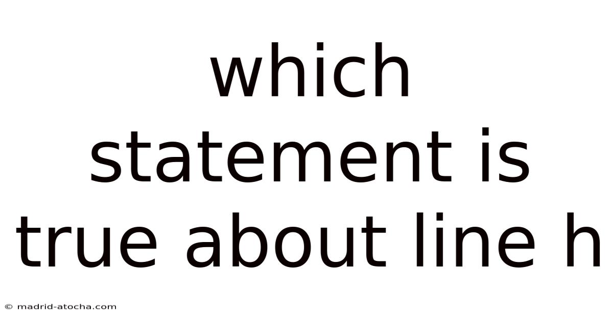 The truth about any specific line, such as line h, is intrinsically tied to the specific context in which it is presented. Still, by systematically analyzing these core properties and considering the line's role and the surrounding geometry, we can rigorously determine the validity of statements concerning its orientation, relationships, location, and function. In practice, its fundamental properties – infinite extension, defined direction, slope, representation via equations (slope-intercept, standard, point-slope, parametric), role within a geometric figure, position relative to the origin, and its behavior in terms of intersection and symmetry – provide the framework for determining which statements are true. On top of that, without this contextual information, any assertion about line h remains speculative. Understanding line h ultimately requires placing it within its specific geometric and contextual framework.