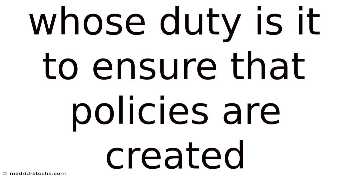 When an organization or government faces a new challenge—whether it’s a safety regulation, a marketing strategy, or a data‑privacy framework—one question immediately arises: *whose duty is it to make sure policies are created?Day to day, * The answer isn’t always clear-cut. Plus, policy creation is a collaborative effort that spans multiple levels, from top executives to front‑line employees, and involves both formal and informal actors. In this article, we break down the key stakeholders, outline their specific duties, and explain how they work together to produce effective, compliant, and sustainable policies.