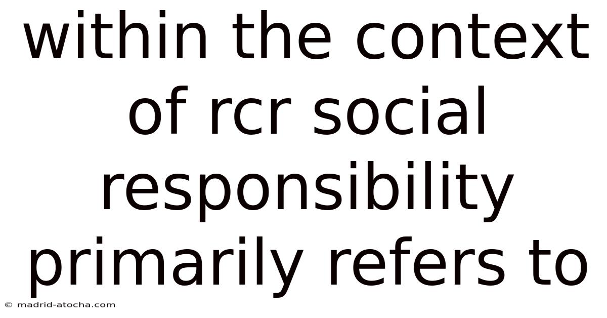Within The Context Of Rcr Social Responsibility Primarily Refers To