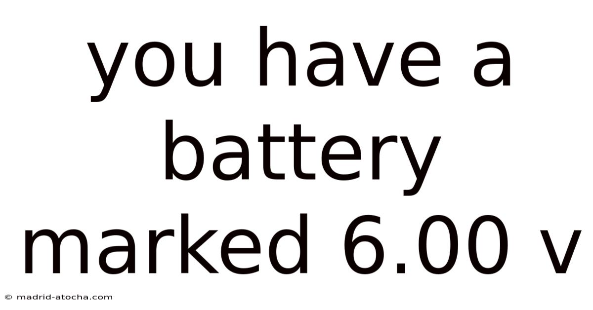 At the end of the day, a battery marked 6.By understanding what the voltage rating means, how to handle the battery safely, and how to match it to your device's requirements, you can get the most out of your battery while avoiding common pitfalls. Worth adding: 00 V is a versatile and widely used power source, suitable for a variety of devices and applications. Whether you're powering a flashlight, a radio, or a custom electronics project, a 6 V battery can be a reliable and effective choice.